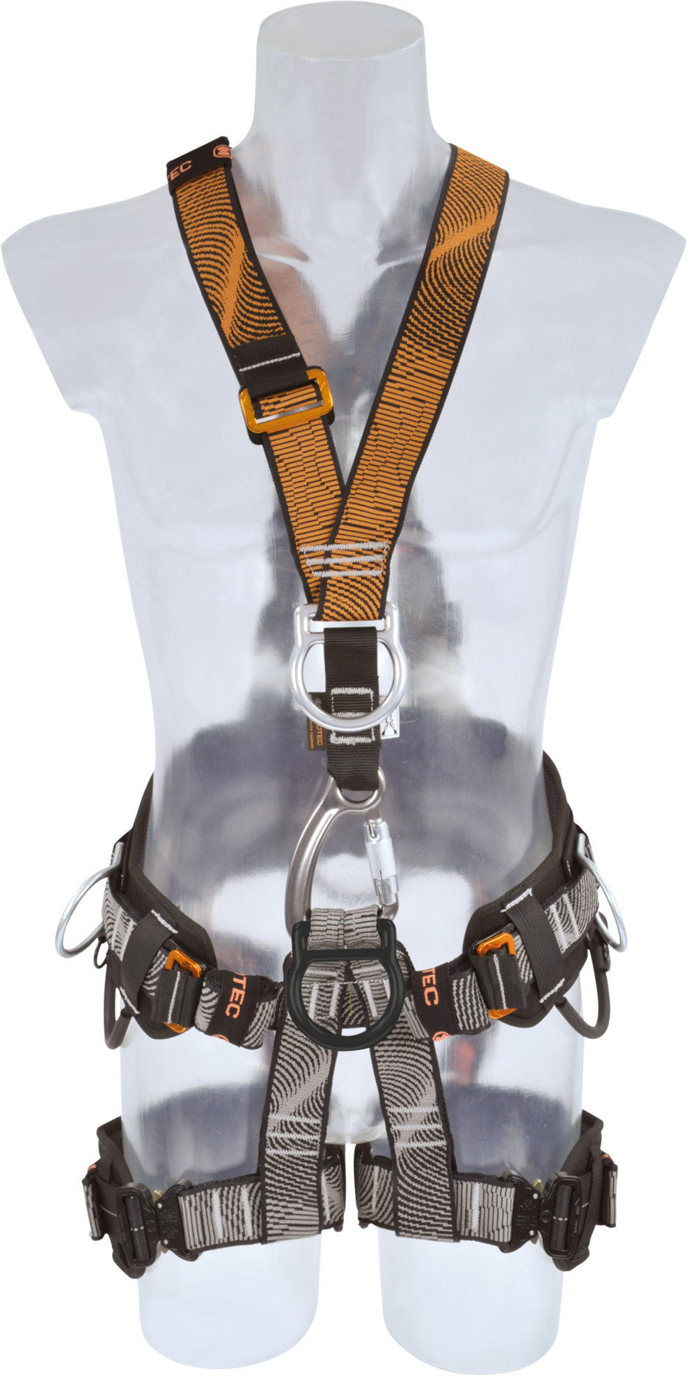 For rope-assisted access and rescue, V-shape, equipment loops, flexible back support