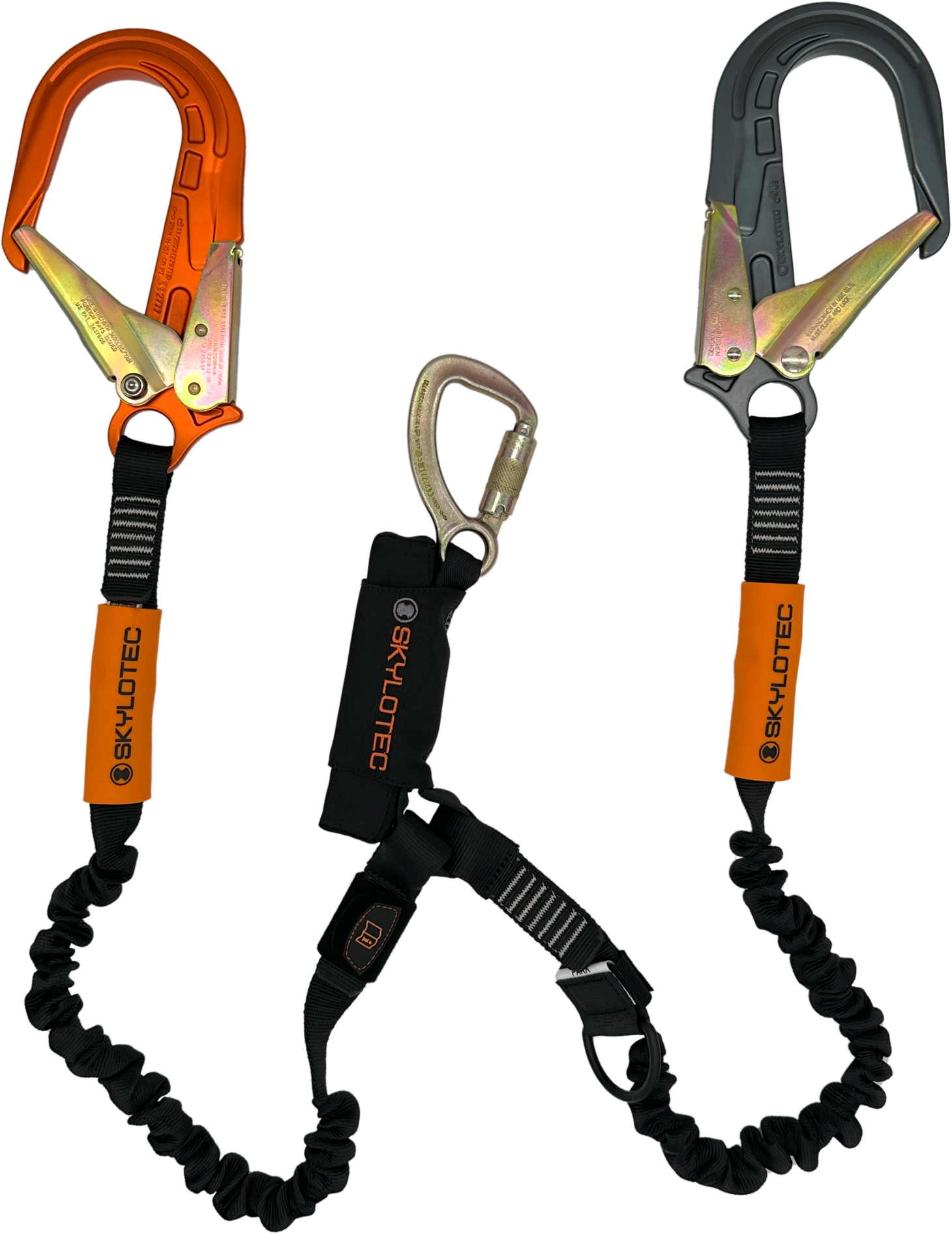 SKYSAFE PRO + Elasticated Twin Leg Lanyard – 22mm gate steel t/action karabiner & 65mm gate Alloy & steel scaffold hook.